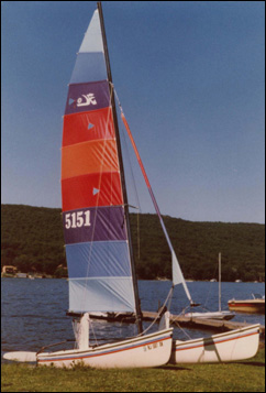I first learned to sail at 15 when a friend taught me how to handle a Sunfish on Lake George in the Adirondacks . After that first fateful summer, I didn’t sail again for a few years until I started renting Hobie 16s on beaches and lakes all over.