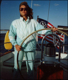 | At the helm of NOTORIOUS, a Sabre 36, twice the size of the previous boat. |