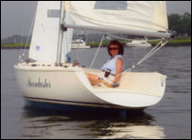 | Daria racing against her husband on an Ideal 18…the perfect small keelboat for confidence building. |