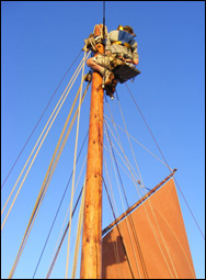 I was afraid. And I was right to be afraid. We were a crew of five, David, three friends and me. None of us had much experience, except David, and his lifetime of sailing with his family had been aboard modern yachts. Lista Light, a 35 tonne, seventy-five year old, gaff ketch, was to David's parents' last boat (a Hallberg Rassy), as a Welsh Cob is to a fine Arabian stallion in my world. Yet five months after leaving Devon we had reached the Atlantic, via north-west Scotland, the west coast of Island and Morocco. We were gaining our sailing stripes. However, halfway between Mauritania and the Caribbean, our amiable floating life dramatically changed.During the night the waves became confused and the wind increased. David and I were below deck trying to snatch some sleep, when one of our crewmates came down and hissed, ‘Dave, you need to come!' Dave sprang out of bed while I groggily reached for a coat. Suddenly, I heard a blood curdling scream, ‘Nooooooo!' I scrambled up on deck to see the main mast noodling like a length of spaghetti, before shearing half-way down and tumbling into the sea. Dave barked orders through the darkness, like a man possessed, and, in the pitching sea with waves crashing over the deck, we fought to save Lista. Half the mast hung at Lista's bows pinioned by rigging, threatening to punch a hole into her hull. With adrenalin pumping through our veins, we pulled in the waterlogged foresail and jib. Amber sparks lit Dave's torso as he worked an angle grinder slowly through the tangled rigging. I readied the dinghy in case we should have to abandon Lista forever, whispering prayers as tears streamed down my face. Then, suddenly, the mast was free, and we were left with a jagged stump and an empty deck. It was 3 o'clock in the morning. We sat in shock. The following morning illuminated the nightmare in full, the hideous vision of a desolate deck, void of the main mast and rigging. The beauty of Lista Light, however, is that she is a ketch. This meant that we could continue sailing and soon David was atop our new stubby main mast creating a jury rig. This allowed us to continue our voyage to the Caribbean and our seabird project (if a little odd looking) until we had time to make a new mast.