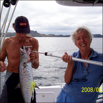 | The galley in our catamaran is down in the port hull slightly aft of amidships. I insisted on a galley down rather than up on the bridge deck as
