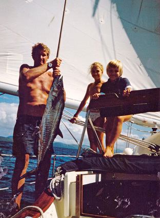 Friends, shells, photos, clothes, books, pareus and other charms, like Jamie’s parrotfish necklace given to him by the Kuna Indian Chief! We also enjoyed collecting coins and stamps from the countries we visited. Not only did they give us something to search out and learn about, but the collections became something sought after in every port we visited.