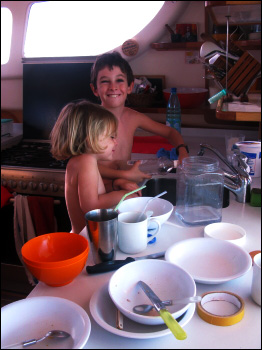 3) We built in extra storage space so that we would have a place for things like toys, tools, spares, food, etc. Living with a family on a boat and doing ocean passages is very different from doing a one-week charter.