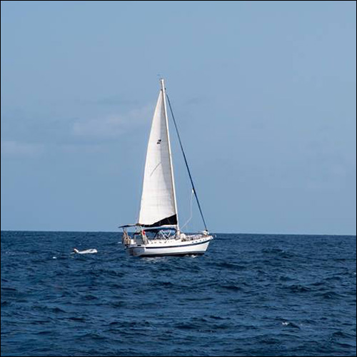 Eben chooses a boat project for the day, puts his swim shorts on and starts working.