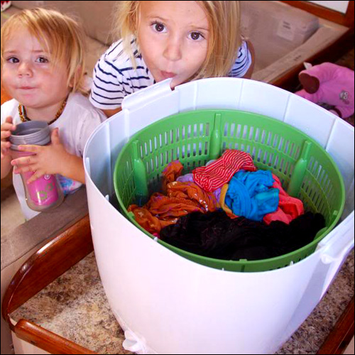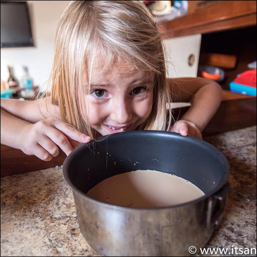 Eben gets the girls their first, second, and often third breakfast, as they enjoy some early morning shows on our laptop.