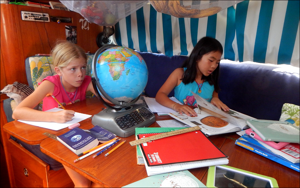 Then there are days when it’s calm enough that Phil and I will read books while the girls play with Legos, Barbies or other toys on deck.