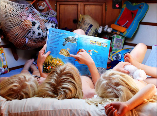 If conditions are benign, we find passages are a great time to pull out the books - counterpoint to the environmental learning that tends to happen in a new location. After two years, it is a joy to see them growing as articulate children of the world through our untraditional approach to learning afloat.